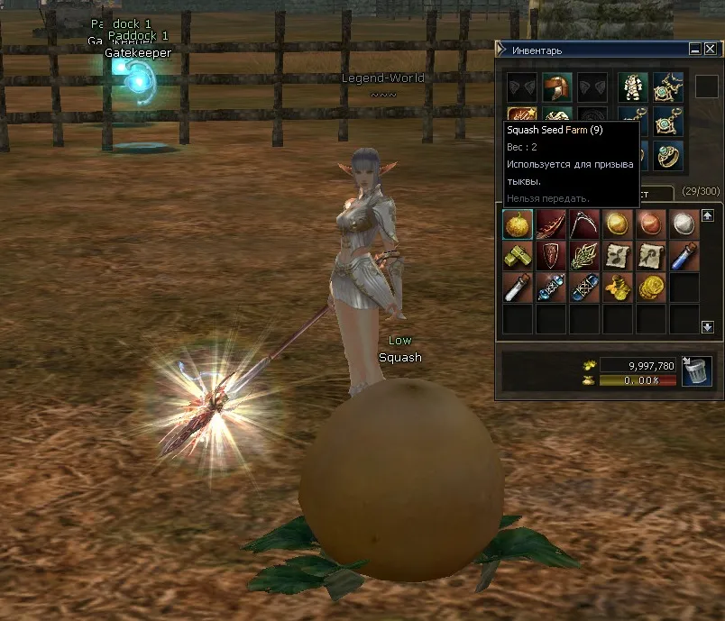 - Используйте семя только внутри Загонов → появится Тыква 1-го уровня